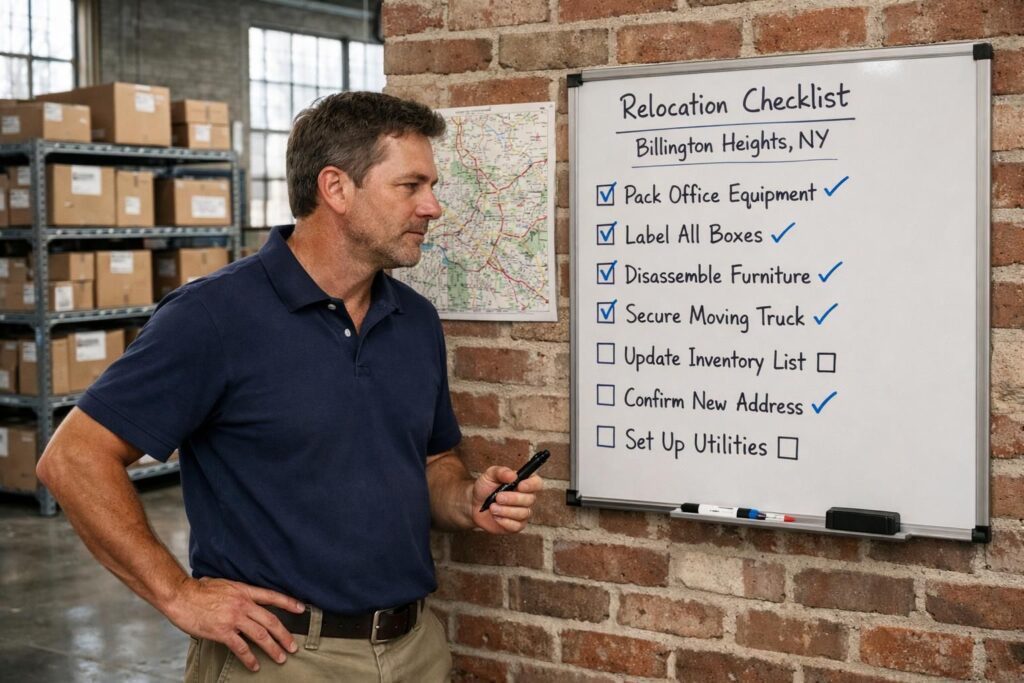 Commercial movers in Billington Heights NY handle everything from standard furniture transport to secure IT equipment relocation for your workspace. They pack up your current setup, transport it safely, and can even help reinstall your technology at the new place. Many teams also provide secure storage options if your new location is not quite ready yet.